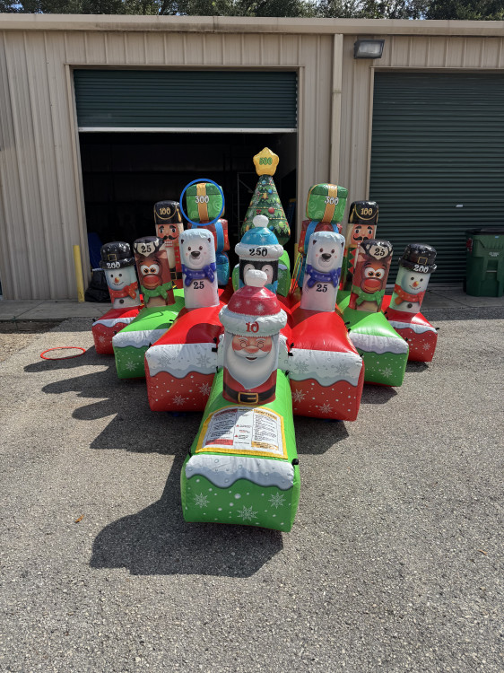 🎯 Bring festive fun to your holiday event with the Christmas Hula Toss! This inflatable holiday-themed game is a joyful twist on the classic hula hoop toss, featuring cheerful pop-up characters like Santa Claus, a Nutcracker, a Christmas tree, and beautifully wrapped presents. Whether you're planning a school winter carnival, a community Christmas party, or a church holiday gathering, this interactive game is a must-have to spread cheer and friendly competition! 🎄🎉