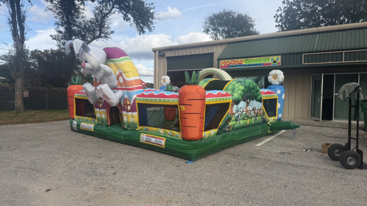This inflatable toddler zone is a soft, enclosed area filled with mini pop-ups, gentle obstacles, and small slides. It’s perfect for younger children to crawl, bounce, and explore in a safe, controlled space. With its beautiful pastel colors and Easter-themed artwork, the Easter Bunny Playground is sure to delight both kids and parents, making it a must-have rental for your spring lineup. 🌼💐