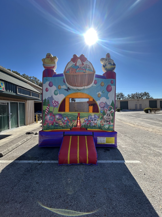 🌸Celebrate Easter in the most exciting way with our Easter Egg Bounce House! This inflatable is covered in beautiful spring-themed graphics featuring vibrant Easter eggs, an adorable Easter basket, and playful bunnies hopping through the flowers. It’s the perfect addition to church egg hunts, community spring festivals, school events, and backyard Easter parties. 🧺🌷