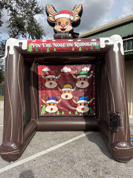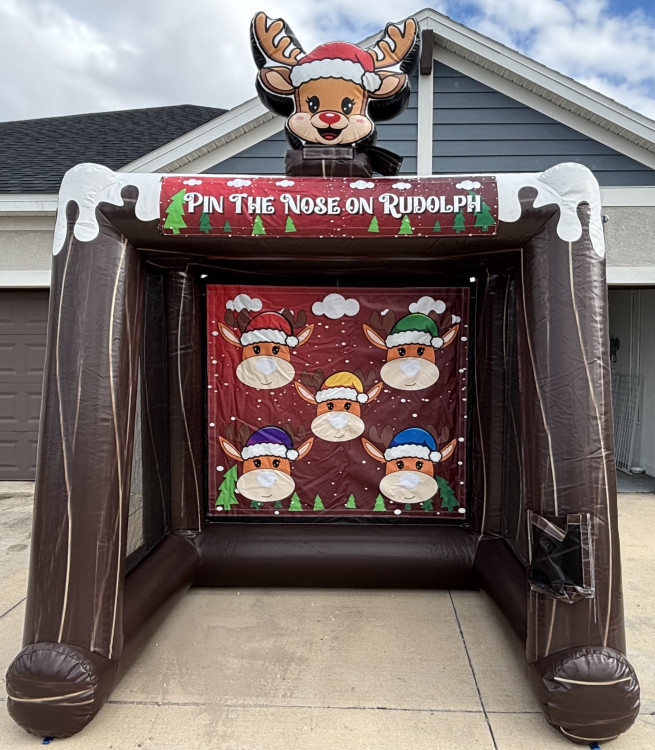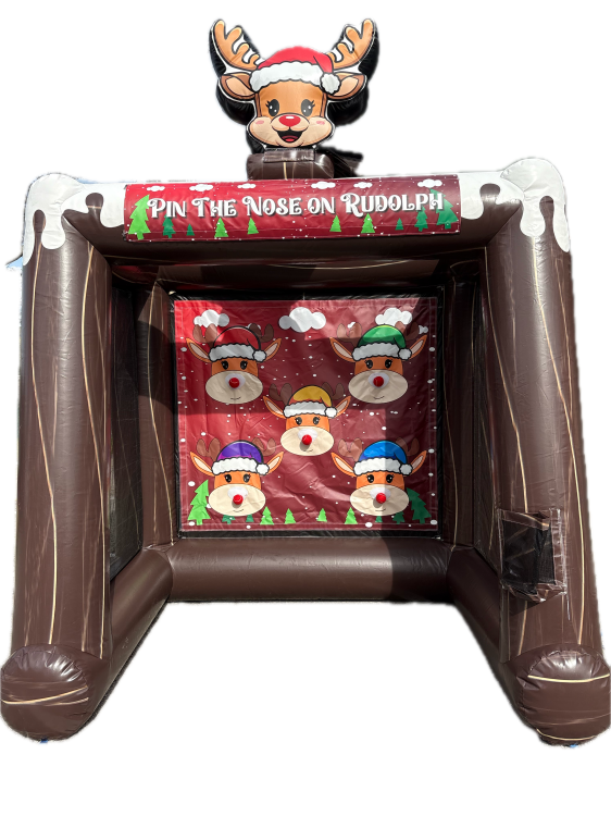 🎅Get ready to jingle all the way with Pin the Nose on Rudolph – the perfect holiday-themed toss game for your next Christmas party, school event, or winter carnival! This single-lane inflatable game challenges players to toss soft red tennis balls at Rudolph targets and try to “pin” them on his nose. Simple, safe, and tons of fun, it's a great activity for kids and adults alike. 🦌🎁