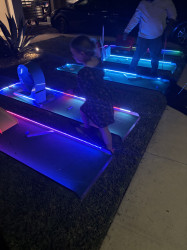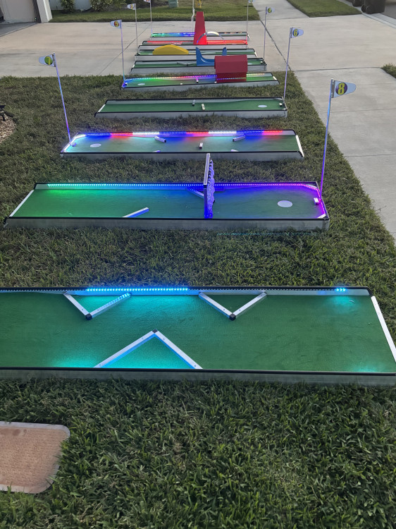 🎉Bring the excitement of the putting green to your next event with our Portable Mini Golf course! This 9-hole setup features sleek aluminum frames, vibrant turf, and built-in LED lighting for an unforgettable mini-golf experience—day or night. Whether it's a corporate event, school carnival, church festival, wedding, or backyard birthday, this eye-catching game is perfect for all ages and skill levels! 🌙⛳️
